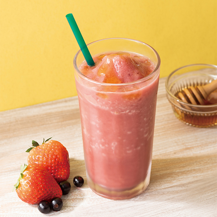 可享受巴西莓與草莓清爽酸甜風味的果香冰沙飲品。